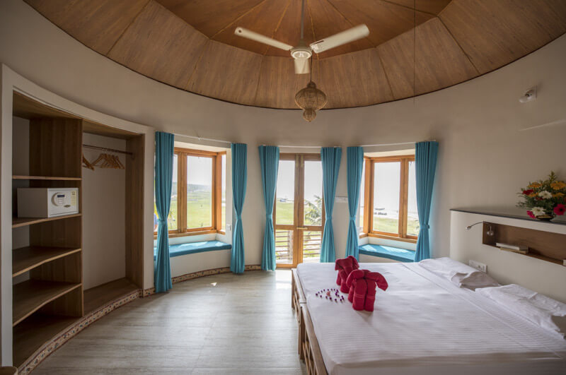Особое очарование имеют особые коттеджи: они круглые и имеют крышу из пальмовых листьев. Их дополнительная привлекательность: море практически перед дверью. В зависимости от расположения, вы можете смотреть на море из своей комнаты или террасы. Круглые коттеджи обособлены и имеют собственную открытую зону отдыха. Интерьер включает в себя просторную спальню с прилегающей ванной комнатой, кондиционер и потолочный вентилятор.