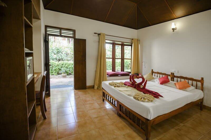 Просто и красиво: бунгало из натурального камня или кирпича — типичные постройки южной Индии. Спальня с прилегающей ванной комнатой ждет гостей. Все бунгало оснащены потолочными вентиляторами, защитными москитными сетками и в большинстве своем имеют уютные эркеры. Стандартные коттеджи расположены в верхней части курорта. Преимущество такого расположения в том, что оно идеально подходит для гостей с ограниченными физическими возможностями. Пути к аюрведической клинике и ресторану короткие, всего несколько шагов. Из-за более тесной застройки стандартные коттеджи меньше других категорий номеров. Благодаря простому традиционному дизайну они предлагают самый доступный способ насладиться аюрведическими процедурами на курорте.