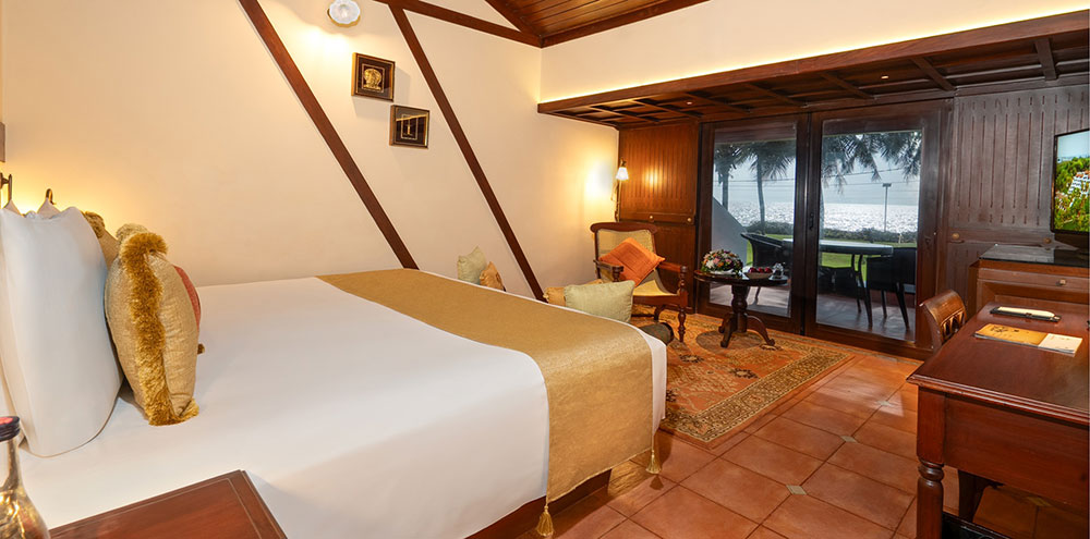 Вы будете очарованы потрясающим видом на Аравийское море, простирающееся до горизонта, и почувствуете, как нежная ласка бриза успокаивает ваши чувства, когда он проходит через ваш собственный балкон. Разработанный Чарльзом Корреа, простор этого красиво оформленного номера на вершине утеса украшен декором в местном стиле, который отражает богатство культурного наследия Кералы, а также отличительной особенностью кровати с осанкой, кроме того, чтобы обеспечить вам полный комфорт.