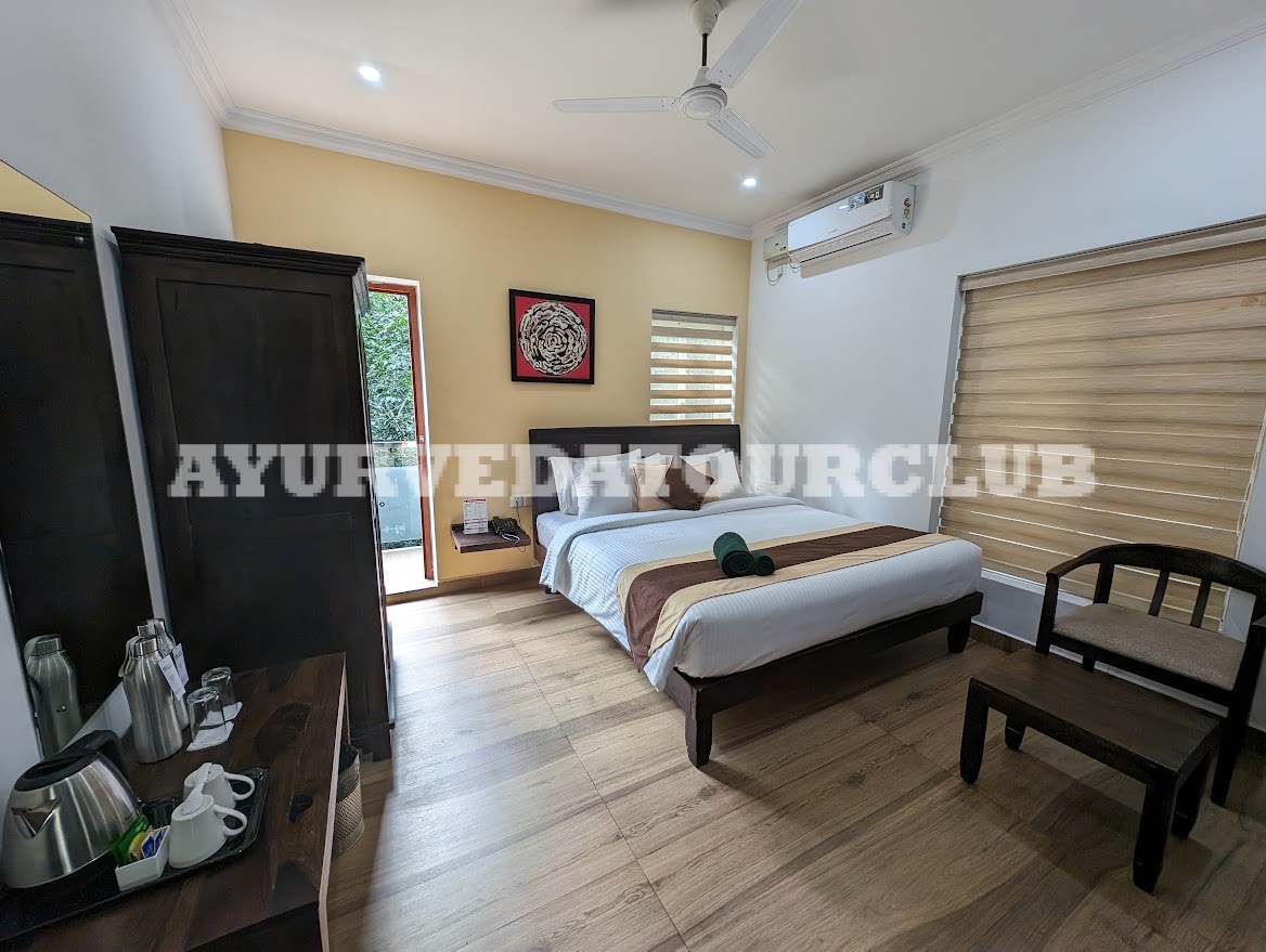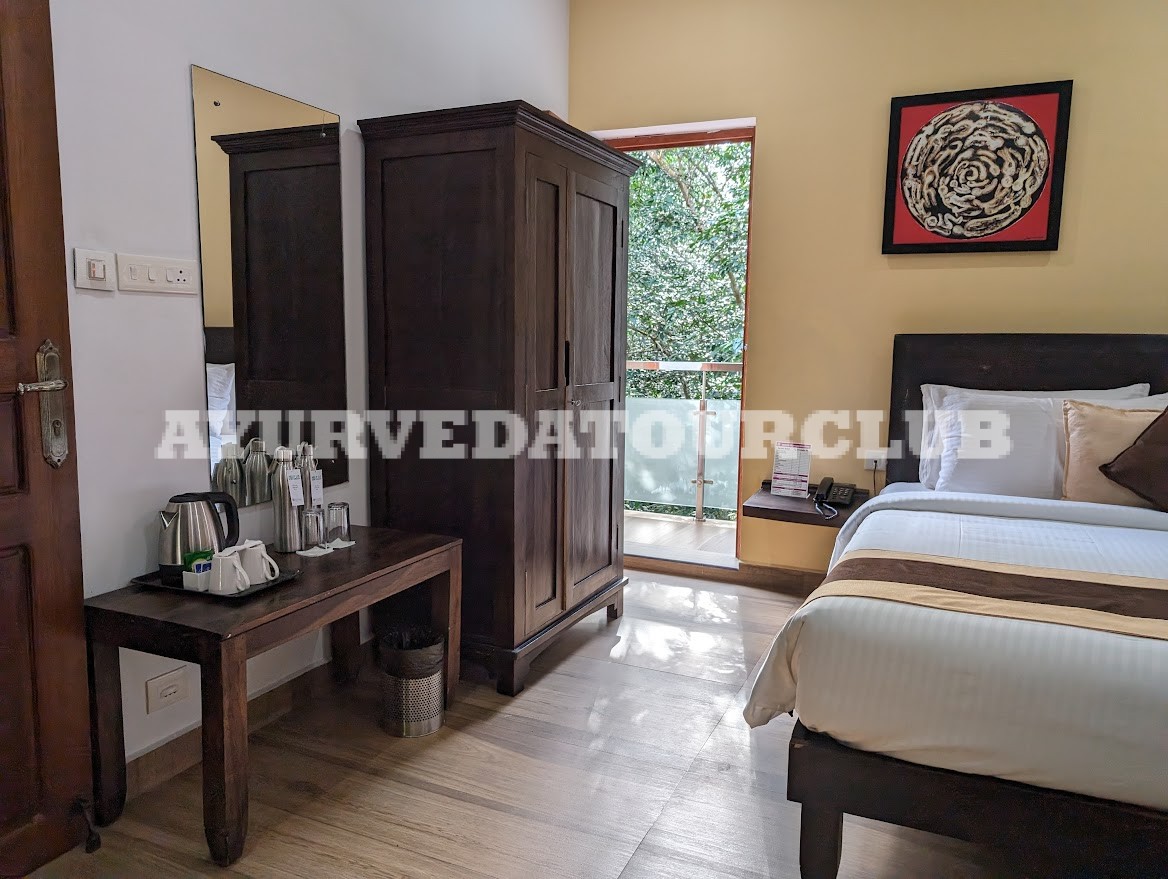 Эти шесть просторных одноместных номеров, каждый с удобной двуспальной кроватью, соединены общим балконом. Из окон открывается вид на пышную зелень каучуковой плантации и безмятежную долину. Номера предлагают спокойную, целебную атмосферу, предназначенную исключительно для гостей, получающих специализированные аюрведические процедуры, обеспечивая уединение, отдых и восстановление сил в объятиях спокойной природы.