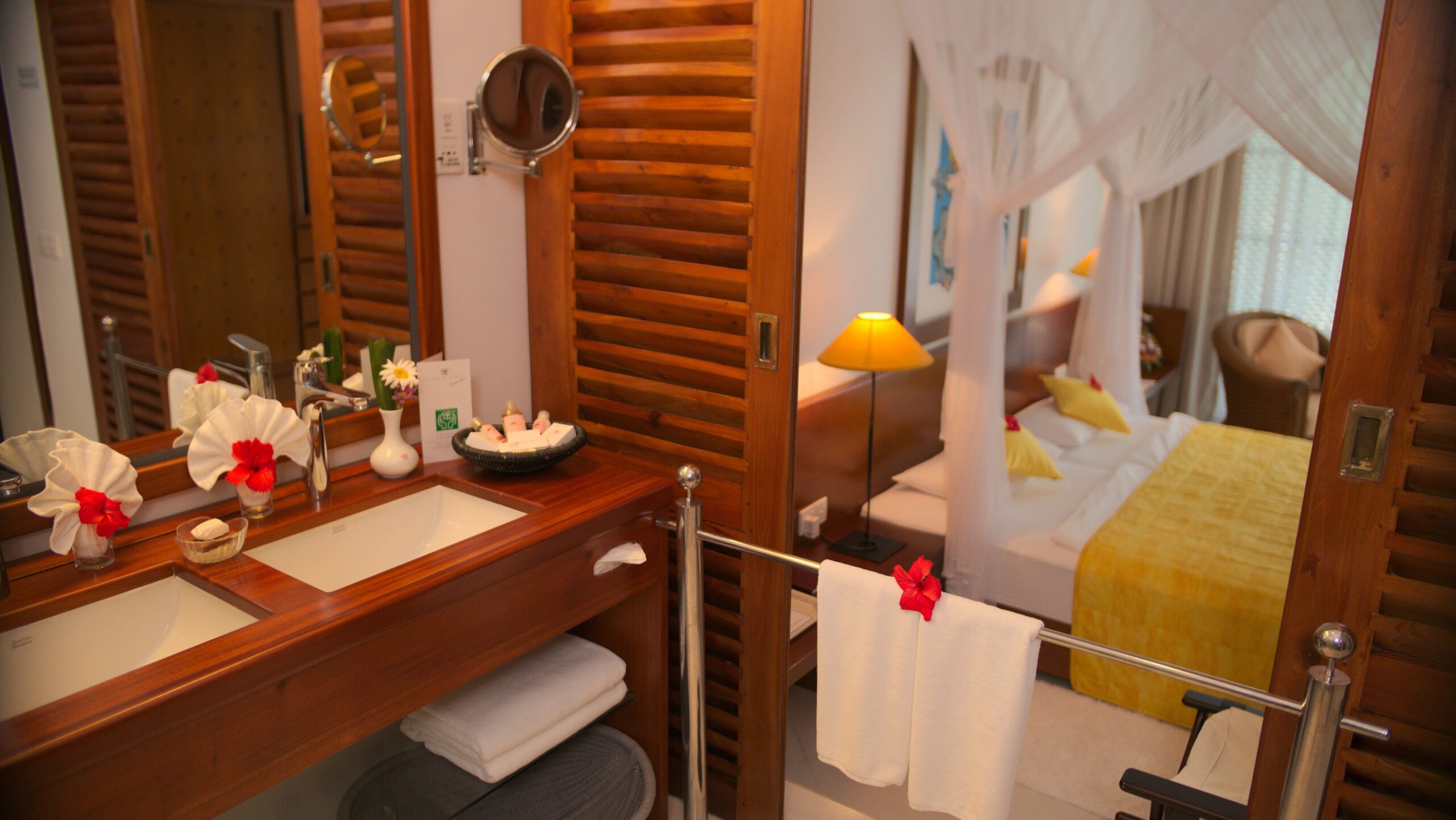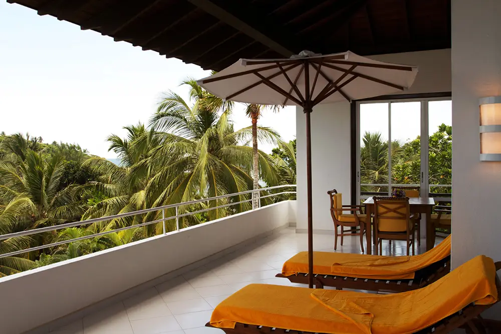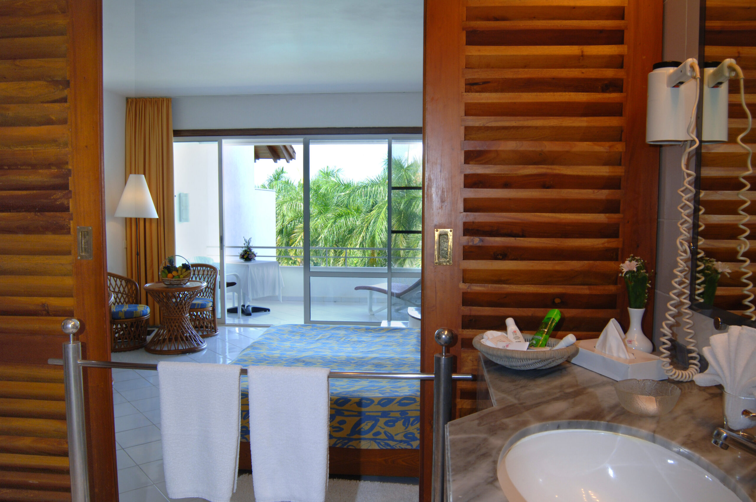 Очень просторный (около 45 м²) двухместный номер, дружелюбно и комфортно оборудованный. Две односпальные кровати с балдахином для москитной сетки, сиденья. Большая душевая кабина с тропическим душем, косметическое зеркало, фен, отдельный туалет с биде, халат, тапочки. Большой балкон или терраса с мебелью и шезлонгом, с видом на море и бассейн, окруженный пальмовым садом. Дополнительные удобства в этих номерах включают чайник для приготовления кофе и чая, а также DVD-плеер. Видео доступны бесплатно на стойке регистрации отеля.