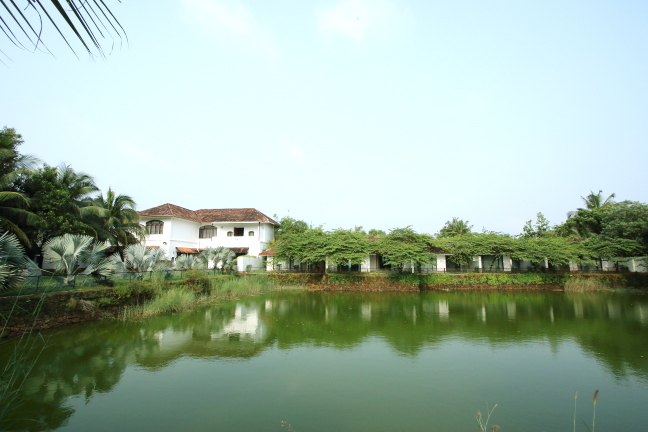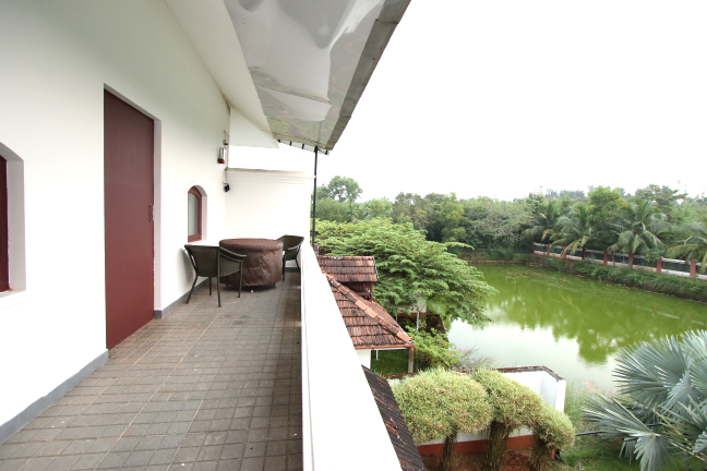 Номер люкс с кондиционером, просторный и уютный номер с зоной отдыха, балконом с видом на пруд и растительность.